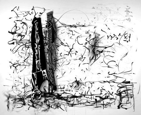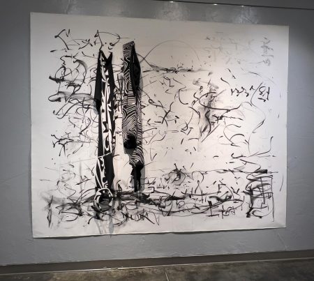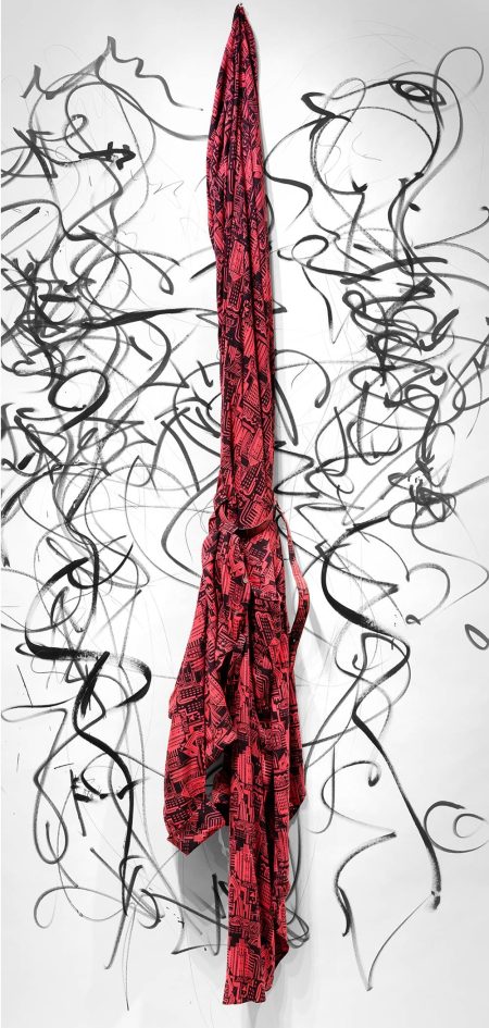 "Towers of Power" | Installation of two dresses (worn 2011–2014) with "Markings 11" (painting on canvas) | 86 x 104" | 2022