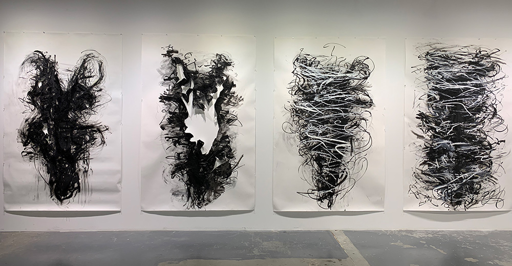 Exposed | Studio view of Exposed 9, 12, 11 & 13 | 82 x 53 | Mixed media on paper