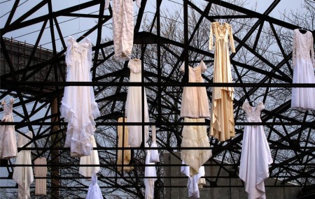 Twenty-three wedding dresses were suspended thirty feet off the ground and exposed to the outdoors for two months. | Atlanta, GA | 2012