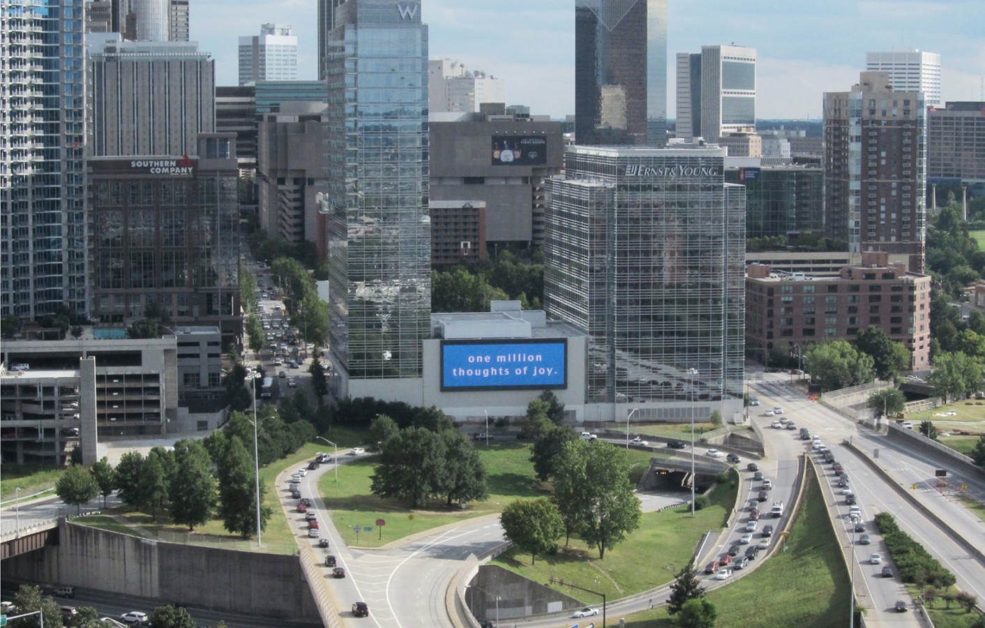 A global art installation that began on Atlanta's iconic billboard, continues with tiny cards being left anonymously in worldwide locations – from New York, The Serengeti and Cape Town to Antarctica, London and Mumbai. | 2011 - present | www.onemillionthoughtsofjoy.com