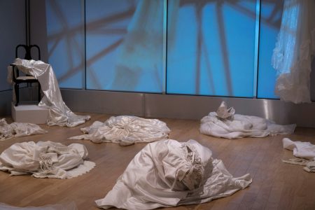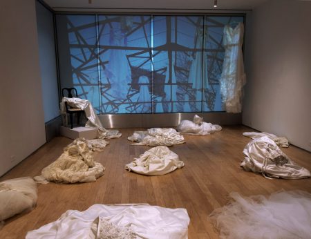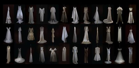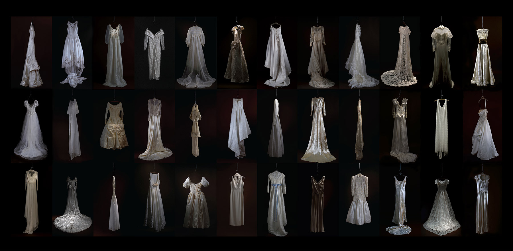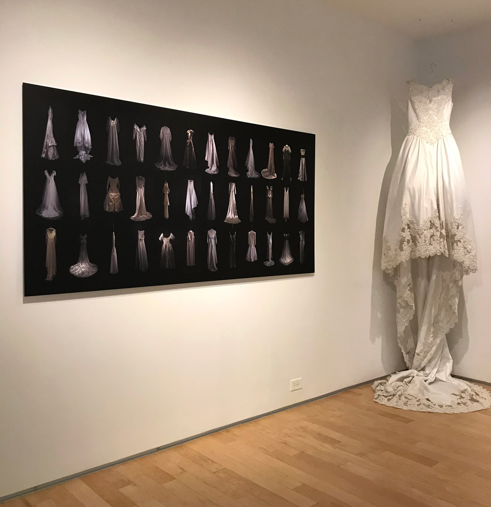 North Gallery installation view with "Thirty-Six Relics" and a previously owned wedding dress | 2018