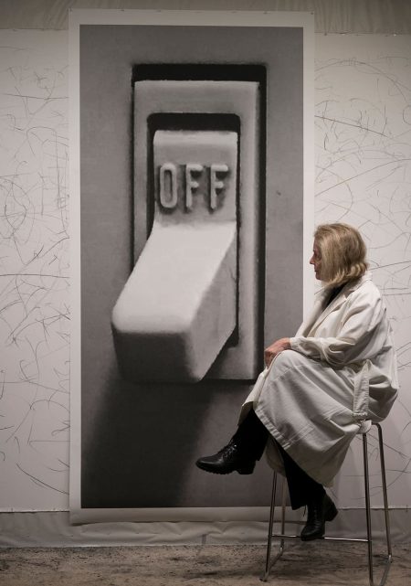"Qu’est-ce que c’est?" | Studio view with artist and "OFF No. 2" | photography | 2020