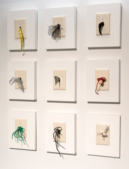 "On/Off Alternatives" | Installation of 10" x 8" assemblages on wood panels | 2022 Top row, Left to Right: #3, #2, #4 Middle row, Left to Right: #6, #9, #5 Bottom row, Left to Right: #7, #1, #4