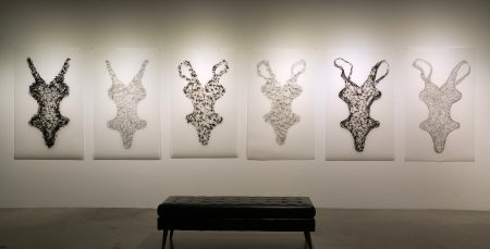 Installation of "Echoes" | Translucent Mylar panels with Acrylic or Graphite, 60"x 36" | 2023