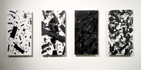 ''The Space Between Us, No. 1, Quartet'' | Mixed media on duplicate archival reproductions of a single image. Mounted to 1/8'' sintra, cleat mounting | 10"h x 5.375"w | 2015